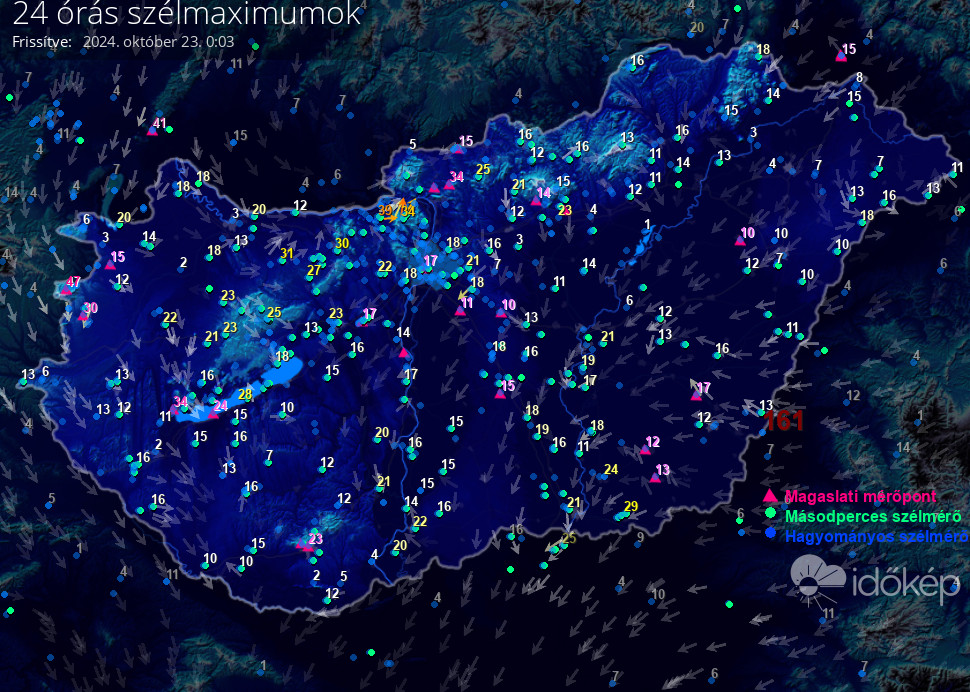 24 órás szélmaximum