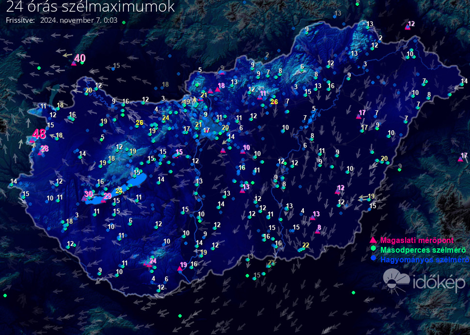24 órás szélmaximum
