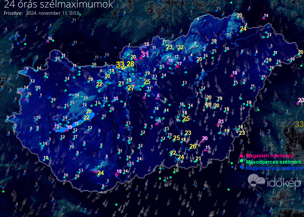 24 órás szélmaximum
