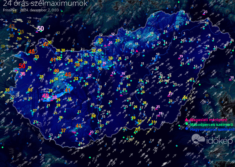 24 órás szélmaximum