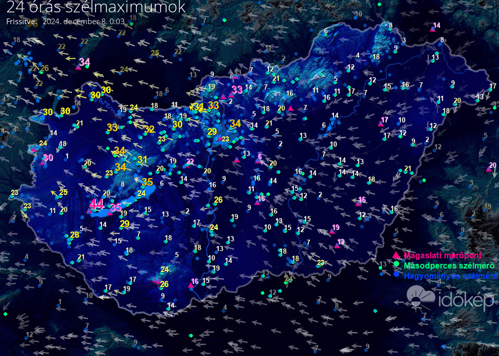 24 órás szélmaximum