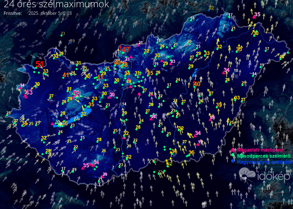 5 percenként frissítve, az elmúlt 24 óra méréseiből,