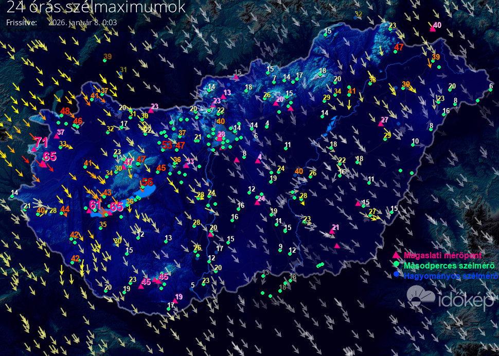 24 órás szélmaximum